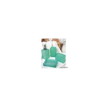 Description:New polyresin bath set with frosted look Tumbler, soap dish, soap dispenser and toothbrush holder Any color is possible Packing: White box, color box or PVC box