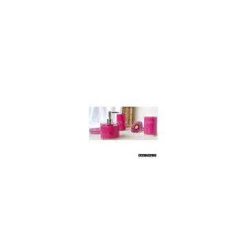 Description:New development bath set in polyresin Tumbler, soap dish, soap dispenser, toothbrush holder The pump for dispenser can be stainless or plastic in chrome color We can do any color Packing: White box or color box