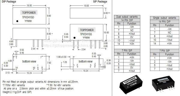| 1W 3kVDC Isolated Single & Dual Output DC/DC Converters power supply module The TPV series of industrial temperature range DC/DC converters are the standard building blocks for on-board distributed power systems. They are ideally suited for providing local supplies on control system boards with the added benefit of 3kVDC isolation . Available in SIP and DIP with dual and single output pinout. | ||||||||||||