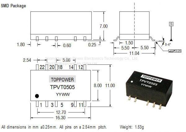 SMD DC-DC Converter / TPVT / 1W / 3KVDC Isolation / Single/Dual OutputUS$ 0.78MOQ: 2147483647 Pieces