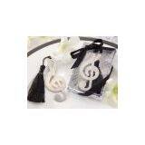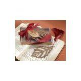 Share the promise of a happy ending with this lovely leaf-shaped bookmark! Autumn has always been a romantic muse for great writers and poets, and with this elegant wedding favour, you can celebrate it's glorious beauty as you embark on a new chapter in your life. The beautifully detailed, openwork metal design is enhanced by a rich burgundy silk tassel that perfectly complements the deep-rust color of the leaf. Features and facts:
