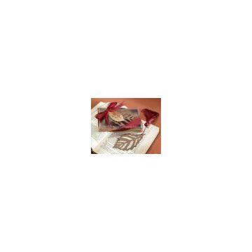 1. Each "Turning Leaves" bookmark measures 9.5 cm and is impressively displayed in an autumn-leaves gift box complete with a clear top, a dainty, burgundy organza ribbon and a "For You" tag that replicates the leaf inside