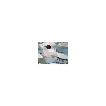 1)Our "Sweet Treats" collection Cupcake Towel favors are a treat your guests are sure to enjoy. Sure to be one of the hottest gifts this year, these clever favors look like delicious cupcakes but are actually a useful treat - a hand towel! Each scrumptiously designed favor is packaged to resemble a delicious cup cake in a unique cupcake box, but the cupcake is actually a useful 100% white cotton hand towel. Each towel is topped of with a faux cherry and measures 10" x 9" and is packaged in adorable blue and white dotted cup cake box, and finished in a clear cello bag with and organza ribbon and Sweet treats collection thank you tag