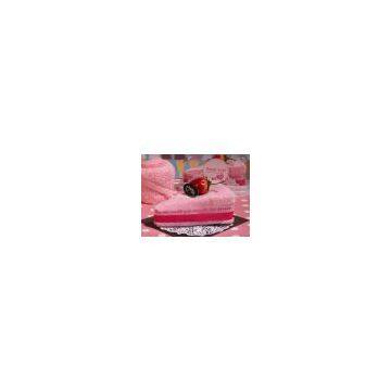 This "sweet treat" favor is sure to delight your guests. Each unique towel cake is cleverly packaged to resemble a life-like piece of strawberry cheesecake, which is actually made of a quality 100% pink cotton towel and topped off with a faux cherry for a tasty finishing touch. Each towel measures 8" x 8" and comes attractively packaged in a clear pvc gift box and our signature "Sweet treats collection" thank you label. Practical and truly unique your guests will be to use this gift time and time again.