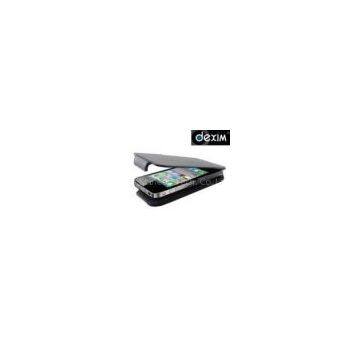 The dark-black leather case flips and folds to provide easy access to the iPhone 4 home screen, camera and functions, and houses built-in brackets to provide close fitting protection.