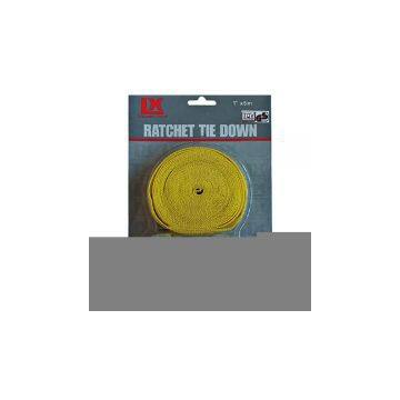 Description:Specifications: 1) Max. pull: 500kg tie-down capacity, material PP belt 2) 25mm x 4.5-5m ratchet tie down 3) Suitable packing: slide card/double blister 4) Optional colors: orange, green, red, yellow, black 5) Ideal for cars, trucks, SUVs, boats and trailers