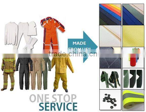 We provide One-Stop service which is helping the cusomter to find/develop their request for whole garment(fabric/accessories)with quality assurance due to we have wroking this FR market more than 15 years, our client have oil & gas, Industries, Army Forces, police, garment maker...etc.