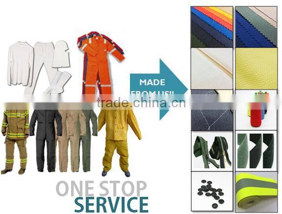 We provide One-Stop service which is helping the cusomter to find/develop their request for whole garment(fabric/accessories)with quality assurance due to we have wroking this FR market more than 15 years, our client have oil & gas, Industries, Army Forces, police, garment maker...etc.