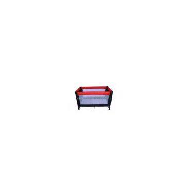 compact, easy-fold system and mesh sides that provide 360 degrees of child visibility.
