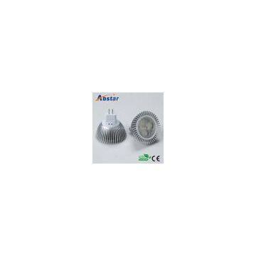 Product Name: LED spot light Part No.: ABSP-B06P03 Operating voltage: 12V Power(W): 3W LED Qty(pcs): 3*1W Lumen(LM): 240LM±10% Color temperature(K): 2800-7500K Color rendering index: ≥75 Size: Φ49.5*45(mm) Material : Aluminum Beam angle: 25° 30° 45° Life Span: ≥50000H Base: E27/ E14/ MR16/ GU10