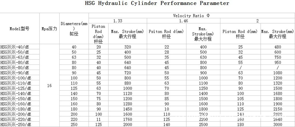 parameter of hydrocylinder