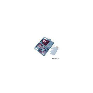 Description:Specifications: 1) 8" booster cables 2) 9pcs 1/4" socket set 3) 1 pair of work gloves 4) Slip-joint pliers 5) Phillips screwdriver 6) Flat head screwdriver 7) Utility vinyl tape 8) Spinner handle 9) 6 terminals 10) Tire gauge 11) 4 auto fuses 12) Tough and hard-shell case Packing: Plastic case + color sheet