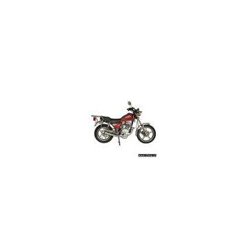 Description:Product Name: MotorcycleModel Number: XF125-5BPlace of Origin: ChinaFeatures: 1) Max. speed: 85km/h 2) Max. load: 150kg 3) Overall dimensions (L x W x H): 1,930 x 840 x 1,190mm 4) Wheelbase: 1,320mm 5) Ground clearance: 150mm 6) Dry weight: 105kg 7) Engine model: XF157FMI 8) Displacement: 124.0ml 9) Power: 7.0kW 10) Engine type: single cylinder, air-cooled, 4-stroke 11) Ignition type: CDI 12) Braking mode: disk/drum 13) Starter: electric/kick