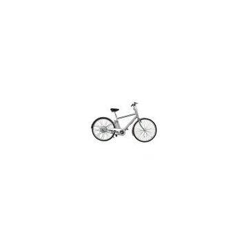 Product Name: Electric BicycleModel Number: TDE2001Z-22Place of Origin: ChinaSpecifications: 1) Model: TDE2001Z-22 2) Chassis (frame): aluminum 3) Suspension: no 4) Motor characteristic: brush-240W 5) Reduction gear between motor/wheel: yes 6) Speed gear: no speed gear 7) Wheels type/size-front/back: Aluminum 26/26 8) Mudguard: yes front + back as picture 9) Batteries type Ni-Mg: 24V-7Ah 10) Range with 1 full charge: 30km 11) Brakes front/back: U-brake, band brake 12) Charger characteristics: 24V–CE certified (EU plug) 13) Input charger power: VXA, 220V-0.4A 50/60Hz 14) Output charger power: 24V - 3A 15) Drive system: step gear only 16) Night lights: yes 17) Basket: no 18) Rack: yes 19) Brake lever: aluminum brake levier + switch 20) Color: natural aluminum Outer packing: Carton dimensions: 150 x 25 x 75cm N.W.: 25kg