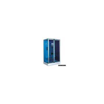 Description:Specifications: 1) Material: a) 5mm thick composite board finished with cast fiberglass b) Basin is above 8mm c) Backboard without fiberglass casting d) Solid and durable 2) Sliding door design: a) 5mm thick tempered glass b) Gray silver deluxe aluminum frame c) Sliding door design is waterproof, no leakage at all d) Safe and durable 3) Electrical system: a) Double CPU for more reliable performance b) Adopts electric protection devices c) Computerized control panel d) Exhaust fan (12V) e) Top lamp (12V) 4) Hardware and structure: a) Mirror b) Top shower c) Rise-fall rod d) Mobile shower e) Hot-cold water controller f) Function adjustment switch g) Water drain h) Stainless steel support i) Foot massage j) Six massage jets k) Towel rack l) Imported ceramic valve core, good performance at either high or low temperatures and service life reaches up to 300,0000 times 5) Functions: a) Electricity leak protection b) Acupuncture massage c) Foot massage d) Mobile and fixed shower e) Ceiling exhaust fan f) Seat g) Hi-fi system h) Adopts original waterproof technology (made with aluminum alloy low basin), that effectively prevents water from leaking out 6) Installation and maintenance: all the functional devices are installed inside the acrylic board, which makes installation and maintenance much more convenient 7) Packing: separated into two parts, easy to carry, saves transportation and freight space