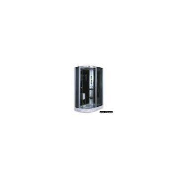 Description:Specifications: 1) Material: a) 5mm thick composite board finished with cast fiberglass b) Basin is above 8mm c) Backboard without fiberglass casting d) Solid and durable 2) Sliding door design: a) 5mm thick tempered glass b) Gray silver deluxe aluminum frame c) Sliding door design is waterproof, no leakage at all d) Safe and durable 3) Electrical system: a) Double CPU for more reliable performance b) Adopts electric protection devices c) Computerized control panel d) Exhaust fan (12V) e) Top lamp (12V) 4) Hardware and structure: a) Mirror b) Top shower c) Rise-fall rod d) Mobile shower e) Hot-cold water controller f) Function adjustment switch g) Water drain h) Stainless steel support i) Foot massage j) Four massage jets k) Towel rack l) Imported ceramic valve core, good performance at either high or low temperatures and service life reaches up to 300,0000 times 5) Functions: a) Electricity leak protection b) Acupuncture massage c) Foot massage d) Mobile and fixed shower e) Ceiling exhaust fan f) Seat g) Hi-fi system h) Adopts original waterproof technology (made with aluminum alloy low basin), that effectively prevents water from leaking out 6) Installation and maintenance: all the functional devices are installed inside the acrylic board, which makes installation and maintenance much more convenient 7) Packing: separated into two parts, easy to carry, saves transportation and freight space
