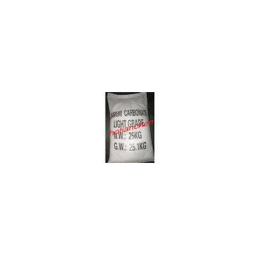 Barium carbonate 99.0%min (LIGHT No.2)(water purification) White irregular powder tested according to GB/T 1614-1999) Uses: Mainly used in water purification magnet material. electronic ceramics, coating paint. We also supply Barium Chloride, Barium Sulphide, Barite Powder, Barium Fluoride, Barium Nitrate, Barium Hydroxide, Strontium Carbonate, Strontium Fluoride, Strontium Chloride, Strontium Nitrate, Soda Ash Light, Sodium Sulphate, Ferrous Sulphate, Iron Oxide, Titanium Dioxide and etc. more questions ,pls feel free to contract with lily at hotianchem dot com