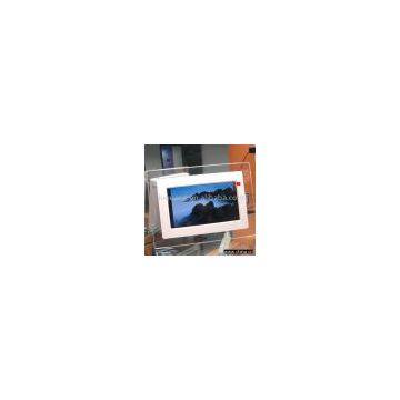 Description:Technical Parameters Panel Size:7 inches Dimensions:235x165x30mm Resolution:480x234 Power Requirement:12VDC,100V-240V AC 1) TFT LCD screen display 2)Beautiful acrylic/Wooden frame 3)SD card slot supporting SD,MMC cards 4)Slideshow supporting JPEG files 5)Supporting file size of 5.0m pixels or above 6)Slid show intervals of 5s-1h (optional) 7)Support for upright and sideways positioning 8)Hook eyes for application on the wall 9)Support several language