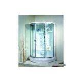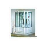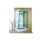 Description:Features: 1) Material: ABS 2) Computer control 4) Radio 5) CD reception wire 6) Telephone 7) Fan 8) Ceiling light 9) Back jet 10) Fill spout outlet 11) Riser rail with shower handle 12) Brass towel rack 13) Foot massage 14) Remote control 15) Ozone disinfection 16) Motor 17) Head shower 18) Dimensions: 980 x 980 x 2,120mm