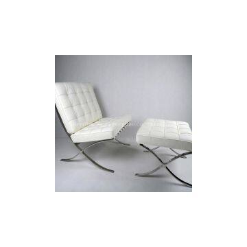 White Barcelona Chair and Ottoman With Italian Leather Barcelona Chair and Ottoman