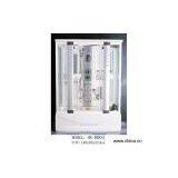 Description:Features: 1) Dimensions: 135 x 135 x 210cm, 120 x 120 x 210cm 2) Luxurious fixed shower 3) Ventilation fan 4) Luxurious shelf 5) Computer control 6) Acupuncture massaging 7) Feet massaging device 8) Hi-Fi stereo system 9) Flexible handle shower tap 10) Star background lamp, pillar lamp 11) Mirror 12) Switch 13) Hot and cold water faucet 14) Aeration window