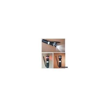 Description:Product Name: TorchPlace of Origin: ChinaFeatures: 1) Aluminum torch 2) One LED bulb, shines red light 3) 1 or 3W with warning light and magnet 4) Uses 3 x AAA or 2CR123A batteries
