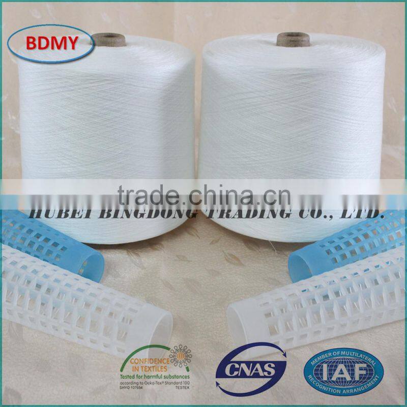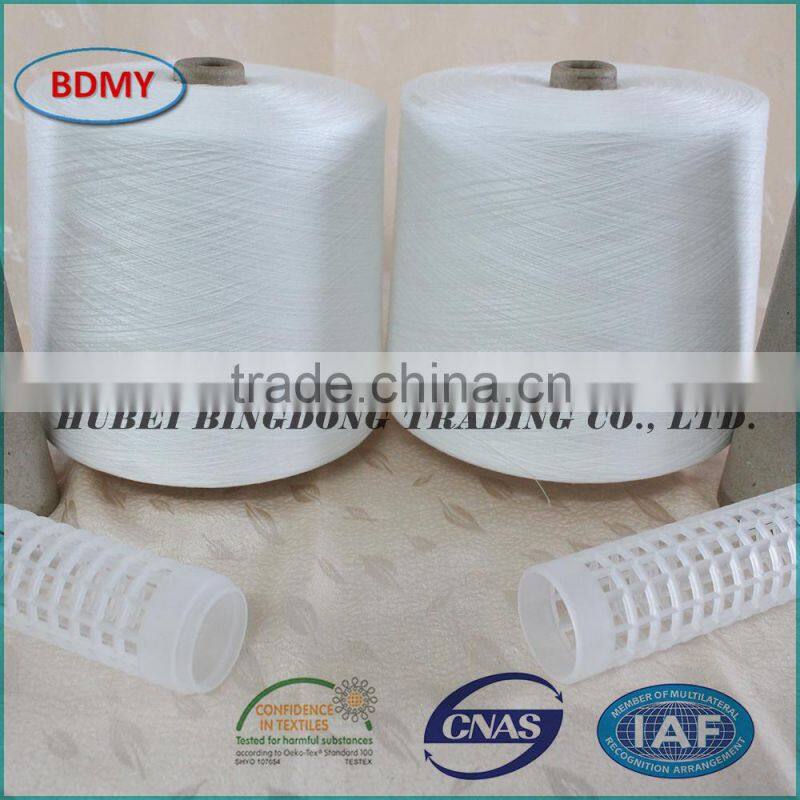 Bleached white 100% spun Polyester Yarn 20S/3 High Quality raw white 100 percent polyester yarn