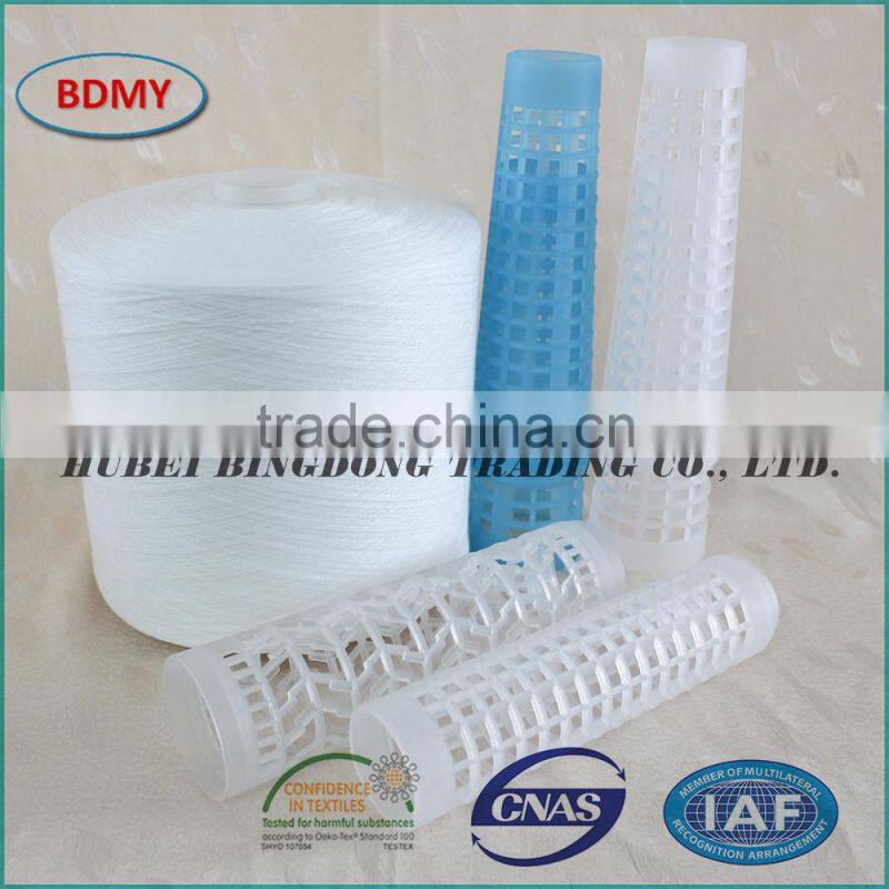 Bleached white 100% spun Polyester Yarn 20S/3 High Quality raw white 100 percent polyester yarn