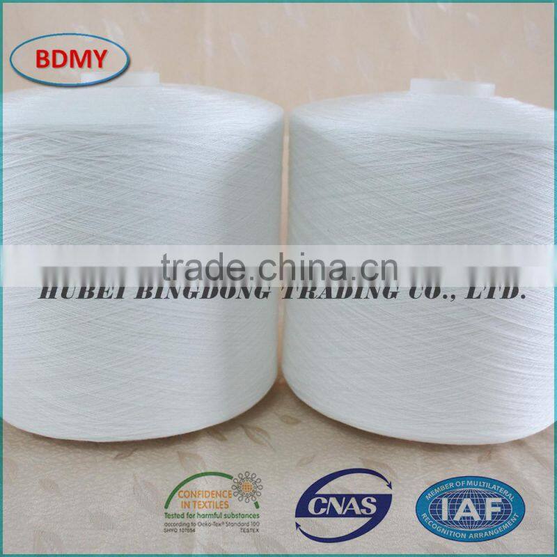 Bleached white 100% spun Polyester Yarn 20S/3 High Quality raw white 100 percent polyester yarn