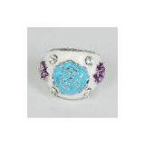 - Rose Flower Ring for Women S925 Stearing Silver Adjustable Wrap Open Ring