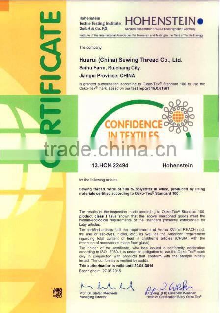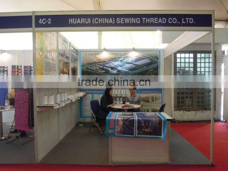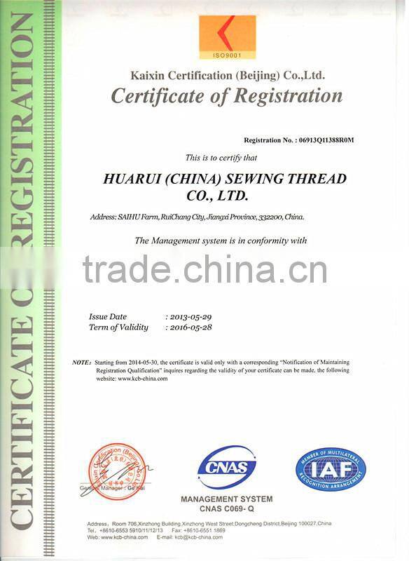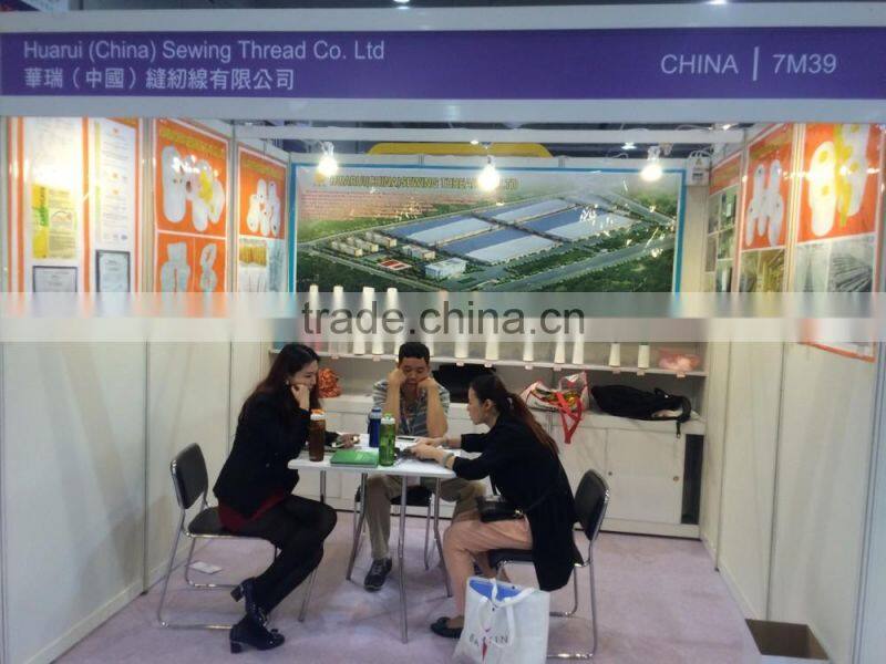 Our spindle is 150000, four big factories now. The material of all our prodcut is brand: Yizheng, Polyester staple fiber 1.2D*38MM (raw white), the raw material of glazed polyester staple fiber , so the sewing thread looks like more bright and strength is best.