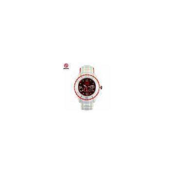 Waterproof Dark Red Dial Silicone White Wristband Ice Watch With Long Life Battery