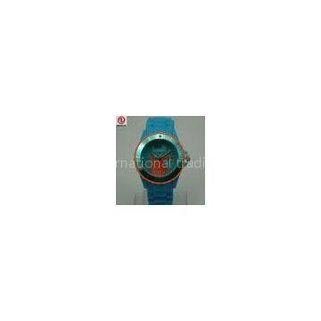 Promotional Gift Blue Silicone Ice Quartz Watch With Calendar Dial, Personalized Pattern