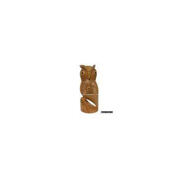 Handmade Hollow Inlay Owl Figure India Wood Carving Art