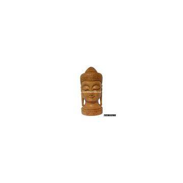 Wood Sculpture Handmade Buddha Head Figure India Art