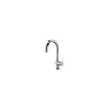Single hole installation, high arc shape pull out spray head, can be pulled out for 1M, convenient cleaning table. Clavate quick-open handle, automatic mix cartridge .High purity brass main body. Water pipe can be rotated 360 °. supply two kinds of water(bubble water and shower water) .Ceramic cartridge, Quality guarantee time:5 years no leakage.