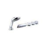 Suitable for bathtub, five holes floor concealed installation. Brass three handles independent switch. High purity brass main body. High quality imported ceramic cartridge, Quality guarantee time:5 years no leakage. With 1.5m stainless steel flexible hose and three functions pull out hand shower,(3 kinds of spray: shower water, complete type, massage water ). Using high quality materials ABS( engineering plastics) ,chrome plated.