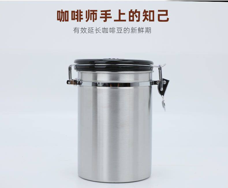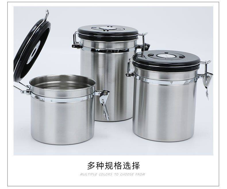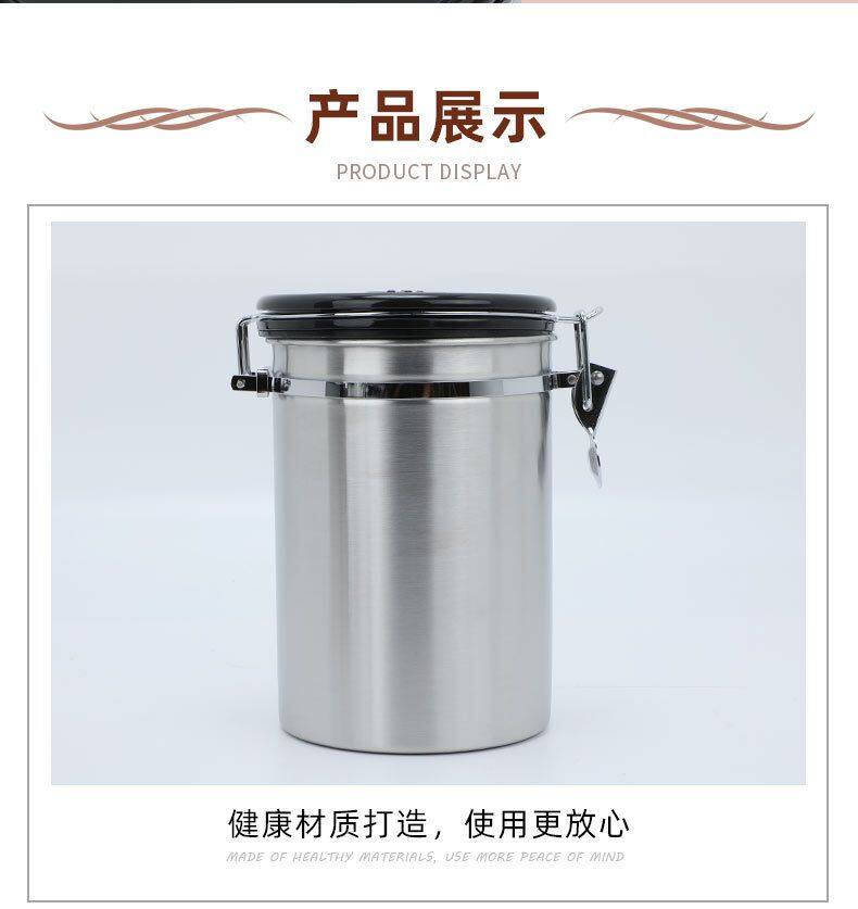 Coffee Powder Storage Tank 304 Stainless Steel Sealed Tank With Exhaust Valve Coffee Bean Seal Tank With Date Lid and Spoon