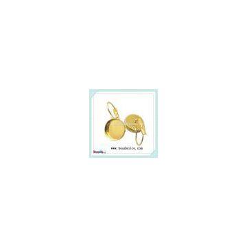 Vacuum real gold plating, More than 2 microns thick, Earrings, Brass, 15mm, sold by Pair