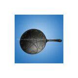 - Round Wooden Base Cast Iron Sizzling Plate Two Ears New Design Cast Iron Paella Pan Deep Fry Pan