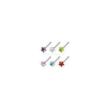 316L surgical stainless steel nose studs with Star shape prong set stone, wholesale Star shape prong set Gem nose piercing jewelry..