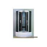 Description:Features: 1) Dimensions: 1,000 x 1,000 x 2,200mm 2) Materials: toughened glass 6mm, aluminum alloy 1.2mm and ABS board 3) Functions: a) LCD display b) Computer control c) Top shower d) Handle shower e) Top light f) Back massage g) Foot massage h) Ventilator i) Loudspeaker j) Radio (frequency display) 4) We install plastic belt (waterproof) around the shower room to prevent from the water leakage 5) Faucets and bath accessories are made of copper material
