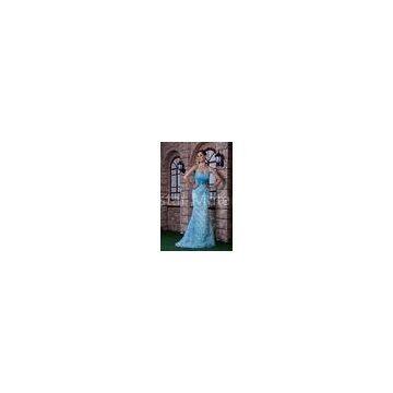 In the hot summer, we always want a dress in the color that looks cool, so in the future, we offer you this blue sweetheart strapless mermaid lace prom dress long party dress with ruffles. This elegant evening dress is made of lace and features sweetheart and strapless neckline. Mermaid silhouette will show your sexy figure. One shining waist band point out your sexy waist. This prom dress also with a sweep train. Back of this dress will in zipper closure. If you wear this blue sweetheart strapless mermaid lace prom dress long party dress with ruffles, you will be one of the most gorgeous. Hope you enjoy your night with this dress.