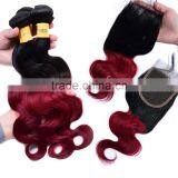 7A Grade Ombre Wave Bundles With 4"X4" Lace Closure Virgin Indian Body Hair