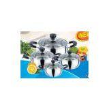 Cooking Stainless Steel Cookware / Pot Sets 12 PCS With Tawny Glass Lid