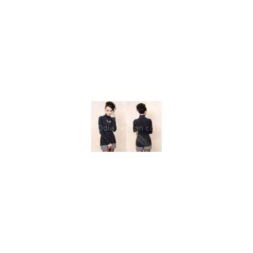 Elegant Solid Color wool Womens Turtleneck Sweaters Pullover with Buttons , Long Sleeve Design