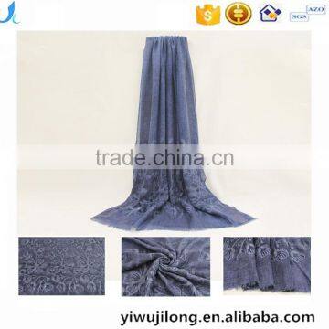 New Fashion Custom Embroidery Flower Plain Dyed Linon Viscose Hijab Scarf