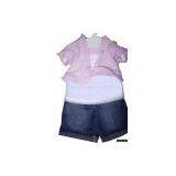 Description:Boy's 2pc set: T-shirt: sleeveless. The printing color and style shows cool feeling in summer, 210g, cotton Pants: 3/4 length, many shirt's colors stitch to match the T-shirt; a knitted label instead of printing Size: 1 - 4 Color: three colors Inner packing: one set with a hanger in a polybag, one dozen in a inner box Outer packing: four dozens in a carton