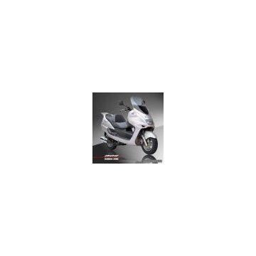 Description:Product Name: ScooterModel Number: JSD150T-9 (150cc, 250cc)Place of Origin: ChinaFeatures: 1) Dry weight: 133kg 2) Wheelbase: 1,500mm 3) Exterior size: 2,110 x 750 x 1,330mm 4) Max. speed: 85km/h 5) Max. payload mass: 140kg 6) Fuel capacity: 12L 7) Braking type (front/rear): disc, disc / drum 8) Engine type: 4-stroke, single cylinder, air-forced cooled 9) Max. power: 7.0kW/7,500rpm 10) Starting system: electric, kick 11) Tire size: 110/90-12 / 130/70-12 12) Battery size: 12V-9Ah