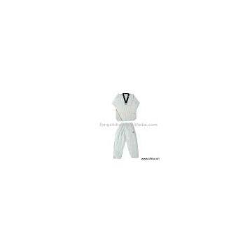 Description:Product Name: Taekwondo ClothesModel Number: TQD-004Place of Origin: ChinaDescription: 1) Fabric: 65% polyester 35% cotton, stripes 2) Traditional South Korean style 3) Left chest and back have no embroider 4) You can choose the fabric Packing: 40pcs/ctn Carton dimensions: 55 x 40 x 40cm N.W.: 28kg G.W.: 29kg